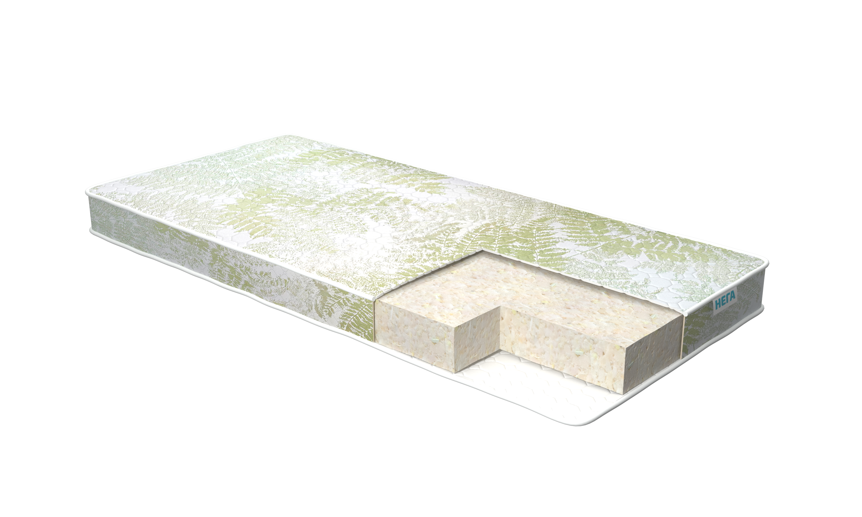 Natura Клевер 130 - беспружинный матрас оптимальной средней жесткости. Наполнение матраса — прочная плита из высокоэластичной пены повышенной плотности. По своим свойствам этот наполнитель не уступает пружинным матрасам, а иногда ортопедический эффект даже выше, благодаря высокой упругости. Высокий уровень эластичности делает матрас Natura Клевер долговечным и износостойким. Упругий наполнитель отлично держит вес, позволяя позвоночнику полностью расслабиться и получить полноценный отдых. Новый трикотаж с принтом "листья папоротника" обладает высокой плотностью, за счет особого плетения устойчив к зацепкам и катышкам. Компания-производитель оставляет за собой право вносить конструктивные изменения в модели, а так же изменять вид ткани цельнозашивного чехла в целях улучшения внешнего вида, функционала и потребительских качеств изделия.
